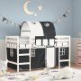 Esta cama alta para niños está hecha de madera maciza de pino y diseñada para entretener además de optimizar el espacio. Construcción estable de madera: Esta cama alta está hecha de madera de pino maciza para mayor estabilidad y durabilidad. La madera de pino tiene una veta recta, y los nudos dan a este material su característico aspecto rústico. Aprovechamiento total del espacio: Esta cama alta individual está elevada 78,5 cm sobre el suelo, lo que proporciona un amplio espacio debajo para almacenamiento u otras actividades. Esta zona se puede utilizar para apilar cajas de almacenaje, guardar juguetes grandes o incluso colocar un sofá infantil para leer. Mucha diversión: Puedes combinar las cortinas y el túnel con la estructura de la cama alta para crear la base secreta para tu hijo. ¡La hora de dormir será un juego y la cama será el centro de atención del dormitorio! Barandillas de seguridad: La cama intermedia para niños cuenta con barandillas de seguridad en los 4 lados, para que tu hijo pueda dormir sin preocuparse de caerse. Cómoda escalera: Esta cama nido infantil tiene una escalera que proporciona comodidad para subir y bajar de la cama. También aporta alegría y convierte la habitación en un parque infantil interior. Información útil:El colchón no está incluido con la cama. Disponemos de una variada selección de colchones. Puedes echar un vistazo a nuestra tienda para buscar el colchón correspondiente. Advertencia:Para evitar que vuelque, este producto debe usarse con el dispositivo de fijación a la pared incluido.