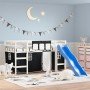 Cama alta niños con cortinas madera pino blanco negro 80x200 cm