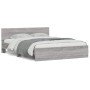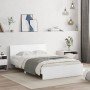 Estructura de cama cabecero y luces LED marrón roble 200x200 cm