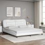 Cama sin colchón cuero sintético blanco negro 200x200 cm