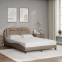 ¡Consigue un sueño más reparador con esta estructura de cama con cabecero! Es un aporte acogedor para cualquier dormitorio. Material duradero: El cuero sintético de primera calidad es un material muy duradero. Es resistente a las manchas, por lo que es fácil de limpiar con un paño húmedo. Además, la superficie lisa da un aspecto lujoso y la belleza del cuero auténtico.Listones robustos: Los listones de madera contrachapada proporcionan una buena distribución del peso, lo que garantiza que el colchón se mantenga en tu sitio con cada giro y vuelta del cuerpo mientras duermes.Excelente soporte: El cabecero acolchado está relleno de espuma para una comodidad ultrasuave y óptima, lo que te brinda un excelente soporte para la espalda mientras estás sentado en la cama para leer o ver la televisión.Diseño lateral ondulado: El look ondulado de la estructura de la cama es elegante y sofisticado, agregando un toque moderno y elegante a tu decoración, convirtiéndolo en el foco de atención de tu dormitorio. Información útil:El colchón no está incluido con la cama. Disponemos de una variada selección de colchones. Puedes echar un vistazo a nuestra tienda para buscar el colchón correspondiente.