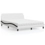 ¡Consigue tener un sueño más reparador en esta cama con colchón! Es un aporte acogedor para cualquier dormitorio. Material duradero: El cuero sintético de primera calidad es un material muy duradero. Es resistente a las manchas, por lo que es fácil de limpiar con un paño húmedo. Además, la superficie lisa da un aspecto lujoso y la belleza del cuero auténtico.Listones robustos: Los listones de madera contrachapada proporcionan una buena distribución del peso, lo que garantiza que el colchón se mantenga en tu sitio con cada giro y vuelta del cuerpo mientras duermes.Excelente apoyo: El cabecero de la cama te proporciona un excelente apoyo para la espalda mientras estás sentado en la cama para leer o ver la televisión.Colchón de espuma: Este colchón de cama de tela de 3 capas está relleno de espuma de PU 22D para ofrecer un confort óptimo. Alivia el cansancio y favorece la circulación sanguínea, con el fin de ofrecerte una relajación completa y una buena calidad de sueño. Además, el colchón está disponible en dureza H2 y H3, por lo que solo tienes que girarlo para elegir la dureza que más te convenga.Diseño lateral ondulado: El look ondulado de la estructura de la cama es elegante y sofisticado, agregando un toque moderno y elegante a tu decoración, convirtiéndolo en el foco de atención de tu dormitorio.