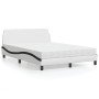 ¡Consigue tener un sueño más reparador en esta cama con colchón! Es un aporte acogedor para cualquier dormitorio. Material duradero: El cuero sintético de primera calidad es un material muy duradero. Es resistente a las manchas, por lo que es fácil de limpiar con un paño húmedo. Además, la superficie lisa da un aspecto lujoso y la belleza del cuero auténtico.Listones robustos: Los listones de madera contrachapada proporcionan una buena distribución del peso, lo que garantiza que el colchón se mantenga en tu sitio con cada giro y vuelta del cuerpo mientras duermes.Excelente apoyo: El cabecero de la cama te proporciona un excelente apoyo para la espalda mientras estás sentado en la cama para leer o ver la televisión.Colchón de espuma: Este colchón de cama de tela de 3 capas está relleno de espuma de PU 22D para ofrecer un confort óptimo. Alivia el cansancio y favorece la circulación sanguínea, con el fin de ofrecerte una relajación completa y una buena calidad de sueño. Además, el colchón está disponible en dureza H2 y H3, por lo que solo tienes que girarlo para elegir la dureza que más te convenga.Diseño lateral ondulado: El look ondulado de la estructura de la cama es elegante y sofisticado, agregando un toque moderno y elegante a tu decoración, convirtiéndolo en el foco de atención de tu dormitorio.