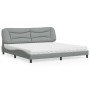 ¡Consigue tener un sueño más reparador en esta cama con colchón! Es un aporte acogedor para cualquier dormitorio. Material de primera calidad: La tela posee un aspecto sencillo y limpio, y es transpirable y duradera.Listones robustos: Los listones de madera contrachapada proporcionan una buena distribución del peso, lo que garantiza que el colchón se mantenga en tu sitio con cada giro y vuelta del cuerpo mientras duermes.Excelente apoyo: El cabecero de la cama te proporciona un excelente apoyo para la espalda mientras estás sentado en la cama para leer o ver la televisión.Colchón de espuma: Este colchón de cama de tela de 3 capas está relleno de espuma de PU 22D para ofrecer un confort óptimo. Alivia el cansancio y favorece la circulación sanguínea, con el fin de ofrecerte una relajación completa y una buena calidad de sueño. Además, el colchón está disponible en dureza H2 y H3, por lo que solo tienes que girarlo para elegir la dureza que más te convenga.Diseño lateral ondulado: El look ondulado de la estructura de la cama es elegante y sofisticado, agregando un toque moderno y elegante a tu decoración, convirtiéndolo en el foco de atención de tu dormitorio.