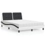 ¡Consigue tener un sueño más reparador en esta cama con colchón! Es un aporte acogedor para cualquier dormitorio. Material duradero: El cuero sintético de primera calidad es un material muy duradero. Es resistente a las manchas, por lo que es fácil de limpiar con un paño húmedo. Además, la superficie lisa da un aspecto lujoso y la belleza del cuero auténtico. Listones robustos: Los listones de madera contrachapada proporcionan una buena distribución del peso, lo que garantiza que el colchón se mantenga en tu sitio con cada giro y vuelta del cuerpo mientras duermes. Excelente soporte: El cabecero acolchado está relleno de espuma para una comodidad ultrasuave y óptima, lo que te brinda un excelente soporte para la espalda mientras estás sentado en la cama para leer o ver la televisión. Colchón de espuma: Este colchón de cama de tela de 3 capas está relleno de espuma de PU 22D para ofrecer un confort óptimo. Alivia el cansancio y favorece la circulación sanguínea, con el fin de ofrecerte una relajación completa y una buena calidad de sueño. Además, el colchón está disponible en dureza H2 y H3, por lo que solo tienes que girarlo para elegir la dureza que más te convenga. Diseño lateral ondulado: El look ondulado de la estructura de la cama es elegante y sofisticado, agregando un toque moderno y elegante a tu decoración, convirtiéndolo en el foco de atención de tu dormitorio.