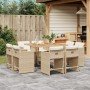 Set comedor de jardín 11 pzas con cojines ratán sintético beige