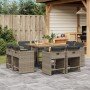 Set comedor de jardín con cojines 13 pzas ratán sintético gris