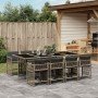 Set comedor para jardín 9 pzas y cojines ratán sintético marrón