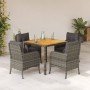 Este juego de comedor de jardín es una gran elección para comer al aire libre o simplemente para relajarte en el jardín, el patio o la terraza. Material duradero: El ratán de PE, también conocido como ratán sintético, es un material sintético resistente y de bajo mantenimiento que se parece al ratán natural. Es ligero, fácil de limpiar y se usa comúnmente para muebles de exterior debido a su durabilidad y propiedades resistentes a la intemperie.Experiencia de asiento cómoda: Estos muebles de exterior, completos con cojines acolchados gruesos, ofrecen una experiencia de asiento cómoda.Funda extraíble y lavable: Estos cojines para sillas cuentan con fundas extraíbles para facilitar su lavado y mantenimiento. Las fundas de los cojines de silla tienen una solapa en la parte posterior para facilitar su fijación a las sillas.Superficie estable y fácil de limpiar: Esta mesa de jardín tiene una superficie de madera de acacia que es resistente, duradero y fácil de limpiar con un paño húmedo.Estructura robusta y estable: La estructura de acero con recubrimiento en polvo garantiza que el mueble de jardín sea resistente y estable para usarlo a diario al aire libre. Información útil:Para asegurarte de que tus muebles de exterior se mantengan hermosos, recomendamos protegerlos con una funda impermeable.