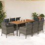 Set de comedor de jardín 9 pzas y cojines ratán sintético negro