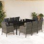 Set comedor jardín 9 pzas y cojines ratán sintético gris