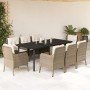 Set comedor de jardín 7 pzas con cojines ratán sintético beige