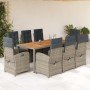 Set de comedor de jardín 9 pzas y cojines ratán sintético negro