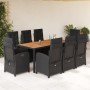 Set comedor jardín 7 pzas y cojines ratán sintético gris