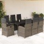 Set comedor jardín 7 pzas y cojines ratán sintético gris