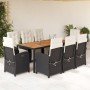 Set de comedor de jardín 9 pzas y cojines ratán sintético negro