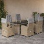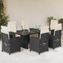 Set de comedor de jardín 7 pzas y cojines ratán sintético negro
