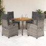 Set comedor de jardín 3 piezas con cojines ratán sintético gris