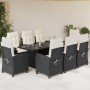 Set comedor jardín 9 pzas y cojines ratán sintético gris