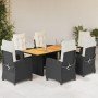 Set de comedor de jardín 9 pzas y cojines ratán sintético negro