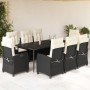 Set comedor de jardín 3 pzas con cojines ratán sintético negro