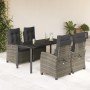 Set comedor de jardín 5 piezas con cojines ratán sintético gris