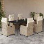 Set comedor de jardín 5 pzas con cojines ratán sintético beige