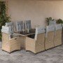 Set comedor jardín 7 pzas y cojines ratán sintético gris