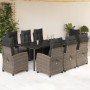 Set comedor jardín 7 pzas y cojines ratán sintético gris