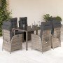 Set comedor jardín 7 pzas y cojines ratán sintético gris