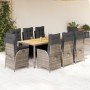 Set comedor de jardín 3 piezas con cojines ratán sintético gris