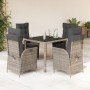 Set de comedor de jardín 7 pzas y cojines ratán sintético negro