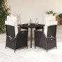 Set de comedor de jardín 7 pzas y cojines ratán sintético negro