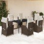 Set comedor de jardín 7 pzas con cojines ratán sintético marrón