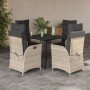 Este juego de comedor de jardín es una gran elección para comer al aire libre o simplemente para relajarte en el jardín, el patio o la terraza. Material duradero: El ratán de PE, también conocido como ratán sintético, es un material sintético resistente y de bajo mantenimiento que se parece al ratán natural. Es ligero, fácil de limpiar y se usa comúnmente para muebles de exterior debido a su durabilidad y propiedades resistentes a la intemperie.Respaldo y reposapiés ajustables: este asiento de jardín tiene un asa. Puedes ajustar el respaldo y el reposapiés a cualquier posición tirando del asa y devolverlos rápidamente a sus posiciones originales.Experiencia de asiento cómoda: Estos muebles de exterior, completos con cojines acolchados gruesos, ofrecen una experiencia de asiento cómoda.Funda desenfundable y lavable: Estos cojines de asiento cuentan con fundas desenfundables para facilitar el lavado y mantenimiento. Los cojines del respaldo tienen una solapa en la parte posterior para facilitar la fijación a los respaldos.Superficie de vidrio: La superficie de la mesa de exterior es de vidrio templado resistente y duradero, por lo que es fácil de limpiar con un paño húmedo y añade un toque de elegancia a tu espacio exterior. Información útil:Para asegurarte de que tus muebles de exterior se mantengan hermosos, recomendamos protegerlos con una funda impermeable.