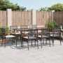 Este juego de comedor de jardín es una gran elección para comer al aire libre o simplemente para relajarte en el jardín, el patio o la terraza. Material duradero: El ratán PE, también conocido como ratán sintético, es un material sintético resistente y de bajo mantenimiento que se parece al ratán natural. Es ligero, fácil de limpiar y se usa comúnmente para muebles de exterior debido a su durabilidad y propiedades resistentes a la intemperie.Experiencia de asiento cómoda: Estos muebles de exterior, completos con cojines acolchados gruesos, ofrecen una experiencia de asiento cómoda.Funda desenfundable y lavable: Estos cojines de asiento cuentan con fundas desenfundables para facilitar el lavado y mantenimiento.Superficie de vidrio: La superficie de la mesa de exterior es de vidrio templado resistente y duradero, por lo que es fácil de limpiar con un paño húmedo y añade un toque de elegancia a tu espacio exterior.Estructura robusta y estable: La estructura de acero con recubrimiento en polvo garantiza que el mueble de jardín sea resistente y estable para usarlo a diario al aire libre. Información útil:Para asegurarte de que tus muebles de exterior se mantengan hermosos, recomendamos protegerlos con una funda impermeable.