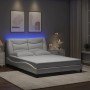 ¡Consigue tener un sueño reparador con esta estructura de cama con luces LED! Es un aporte acogedor para cualquier dormitorio. Material duradero: El cuero sintético de primera calidad es un material muy duradero. Es resistente a las manchas, por lo que es fácil de limpiar con un paño húmedo. Además, la superficie lisa da un aspecto lujoso y la belleza del cuero auténtico.Listones robustos: Los listones de madera contrachapada proporcionan una buena distribución del peso, lo que garantiza que el colchón se mantenga en tu sitio con cada giro y vuelta del cuerpo mientras duermes.Excelente apoyo: El cabecero de la cama te proporciona un excelente apoyo para la espalda mientras estás sentado en la cama para leer o ver la televisión.Tira de LED de colores: Alegra la oscuridad con luces LED de colores. Los cierres de gancho y bucle de la parte posterior del cojín del cabecero se pueden utilizar para fijar las luces LED.Diseño lateral ondulado: El look ondulado de la estructura de la cama es elegante y sofisticado, agregando un toque moderno y elegante a tu decoración, convirtiéndolo en el foco de atención de tu dormitorio. Información útil:El colchón no está incluido con la cama. Disponemos de una variada selección de colchones. Puedes echar un vistazo a nuestra tienda para buscar el colchón correspondiente.El producto tiene un conector USB que necesita una fuente de alimentación USB certificada de 5 V (no incluida).