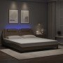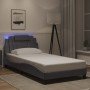 ¡Consigue tener un sueño reparador con esta estructura de cama con luces LED! Es un aporte acogedor para cualquier dormitorio. Material duradero: El cuero sintético de primera calidad es un material muy duradero. Es resistente a las manchas, por lo que es fácil de limpiar con un paño húmedo. Además, la superficie lisa da un aspecto lujoso y la belleza del cuero auténtico.Listones robustos: Los listones de madera contrachapada proporcionan una buena distribución del peso, lo que garantiza que el colchón se mantenga en tu sitio con cada giro y vuelta del cuerpo mientras duermes. Excelente soporte: El cabecero acolchado está relleno de espuma para una comodidad ultrasuave y óptima, lo que te brinda un excelente soporte para la espalda mientras estás sentado en la cama para leer o ver la televisión. Tira de LED de colores: Alegra la oscuridad con luces LED de colores. Los cierres de gancho y bucle de la parte posterior del cojín del cabecero se pueden utilizar para fijar las luces LED. Diseño lateral ondulado: El look ondulado de la estructura de la cama es elegante y sofisticado, agregando un toque moderno y elegante a tu decoración, convirtiéndolo en el foco de atención de tu dormitorio. Información útil:El colchón no está incluido con la cama. Disponemos de una variada selección de colchones. Puedes echar un vistazo a nuestra tienda para buscar el colchón correspondiente.El producto tiene un conector USB que necesita una fuente de alimentación USB certificada de 5 V (no incluida).