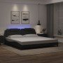 Estructura cama con LED cuero sintético negro blanco 100x200 cm