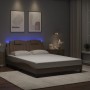 Estructura cama con luces LED cuero sintético marrón 140x190 cm