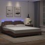 ¡Consigue tener un sueño reparador con esta estructura de cama con luces LED! Es un aporte acogedor para cualquier dormitorio. Material duradero: El cuero sintético de primera calidad es un material muy duradero. Es resistente a las manchas, por lo que es fácil de limpiar con un paño húmedo. Además, la superficie lisa da un aspecto lujoso y la belleza del cuero auténtico.Listones robustos: Los listones de madera contrachapada proporcionan una buena distribución del peso, lo que garantiza que el colchón se mantenga en tu sitio con cada giro y vuelta del cuerpo mientras duermes.Excelente apoyo: El cabecero de la cama te proporciona un excelente apoyo para la espalda mientras estás sentado en la cama para leer o ver la televisión.Tira de LED de colores: Alegra la oscuridad con luces LED de colores. Los cierres de gancho y bucle de la parte posterior del cojín del cabecero se pueden utilizar para fijar las luces LED.Diseño lateral ondulado: El look ondulado de la estructura de la cama es elegante y sofisticado, agregando un toque moderno y elegante a tu decoración, convirtiéndolo en el foco de atención de tu dormitorio. Información útil:El colchón no está incluido con la cama. Disponemos de una variada selección de colchones. Puedes echar un vistazo a nuestra tienda para buscar el colchón correspondiente.El producto tiene un conector USB que necesita una fuente de alimentación USB certificada de 5 V (no incluida).