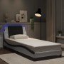 ¡Consigue tener un sueño reparador con esta estructura de cama con luces LED! Es un aporte acogedor para cualquier dormitorio. Material duradero: El cuero sintético de primera calidad es un material muy duradero. Es resistente a las manchas, por lo que es fácil de limpiar con un paño húmedo. Además, la superficie lisa da un aspecto lujoso y la belleza del cuero auténtico.Listones robustos: Los listones de madera contrachapada proporcionan una buena distribución del peso, lo que garantiza que el colchón se mantenga en tu sitio con cada giro y vuelta del cuerpo mientras duermes.Excelente apoyo: El cabecero de la cama te proporciona un excelente apoyo para la espalda mientras estás sentado en la cama para leer o ver la televisión.Tira de LED de colores: Alegra la oscuridad con luces LED de colores. Los cierres de gancho y bucle de la parte posterior del cojín del cabecero se pueden utilizar para fijar las luces LED.Diseño lateral ondulado: El look ondulado de la estructura de la cama es elegante y sofisticado, agregando un toque moderno y elegante a tu decoración, convirtiéndolo en el foco de atención de tu dormitorio. Información útil:El colchón no está incluido con la cama. Disponemos de una variada selección de colchones. Puedes echar un vistazo a nuestra tienda para buscar el colchón correspondiente.El producto tiene un conector USB que necesita una fuente de alimentación USB certificada de 5 V (no incluida).
