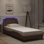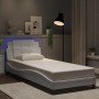 ¡Consigue tener un sueño reparador con esta estructura de cama con luces LED! Es un aporte acogedor para cualquier dormitorio. Material duradero: El cuero sintético de primera calidad es un material muy duradero. Es resistente a las manchas, por lo que es fácil de limpiar con un paño húmedo. Además, la superficie lisa da un aspecto lujoso y la belleza del cuero auténtico.Listones robustos: Los listones de madera contrachapada proporcionan una buena distribución del peso, lo que garantiza que el colchón se mantenga en tu sitio con cada giro y vuelta del cuerpo mientras duermes.Excelente apoyo: El cabecero de la cama te proporciona un excelente apoyo para la espalda mientras estás sentado en la cama para leer o ver la televisión.Tira de LED de colores: Alegra la oscuridad con luces LED de colores. Los cierres de gancho y bucle de la parte posterior del cojín del cabecero se pueden utilizar para fijar las luces LED.Diseño lateral ondulado: El look ondulado de la estructura de la cama es elegante y sofisticado, agregando un toque moderno y elegante a tu decoración, convirtiéndolo en el foco de atención de tu dormitorio. Información útil:El colchón no está incluido con la cama. Disponemos de una variada selección de colchones. Puedes echar un vistazo a nuestra tienda para buscar el colchón correspondiente.El producto tiene un conector USB que necesita una fuente de alimentación USB certificada de 5 V (no incluida).