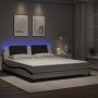 Estructura cama con luces LED cuero sintético blanco 200x200 cm