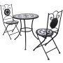 ¡Disfruta de una taza de café o charla con tu familia y amigos en el jardín, el patio o en el balcón con este juego de bistro de mosaico! Tablero estable y fácil de limpiar: Esta mesa de jardín tiene un tablero de cerámica que es resistente, duradero y fácil de limpiar con un paño húmedo.Estructura robusta y estable: La estructura de hierro con recubrimiento en polvo garantiza que la mesa y las sillas del bistro sean fuerte y estable para el uso diario en interiores o exteriores.Diseño plegable: La silla de comedor bistró también se puede plegar para ahorrar espacio cuando no está en uso.Diseño en mosaico: El juego de balcón ayuda a crear un ambiente mediterráneo en los entornos interiores o exteriores con su diseño de mosaico. Información útil:Para asegurarte de que tus muebles de exterior se mantengan hermosos, recomendamos protegerlos con una funda impermeable.