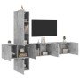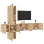 Muebles de TV de pared 5 pzas madera ingeniería roble ahumado