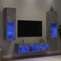 Muebles TV pared con LED 5 pzas madera ingeniería roble ahumado