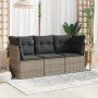 Set de sofá de jardín 3 pzas y cojines ratán sintético gris