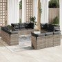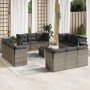 Set de sofás de jardín y cojines 12 pzas ratán sintético marrón