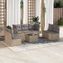 Juego de sofás de jardín con cojines beige 8 pzas ratán PE